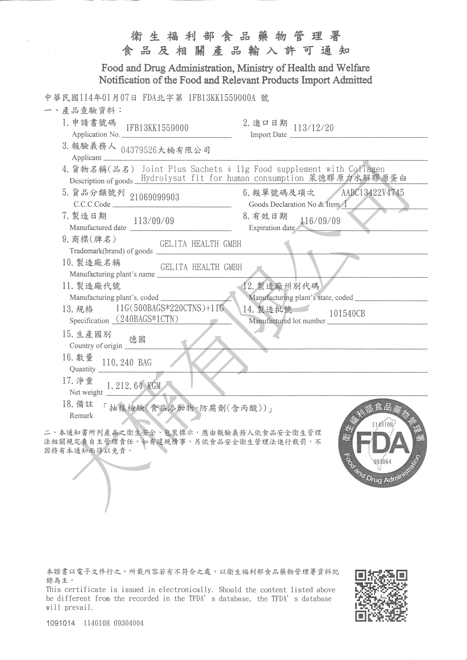 • 原料符合歐盟標準並且通過美國FDA 的 GRAS 安全認證。