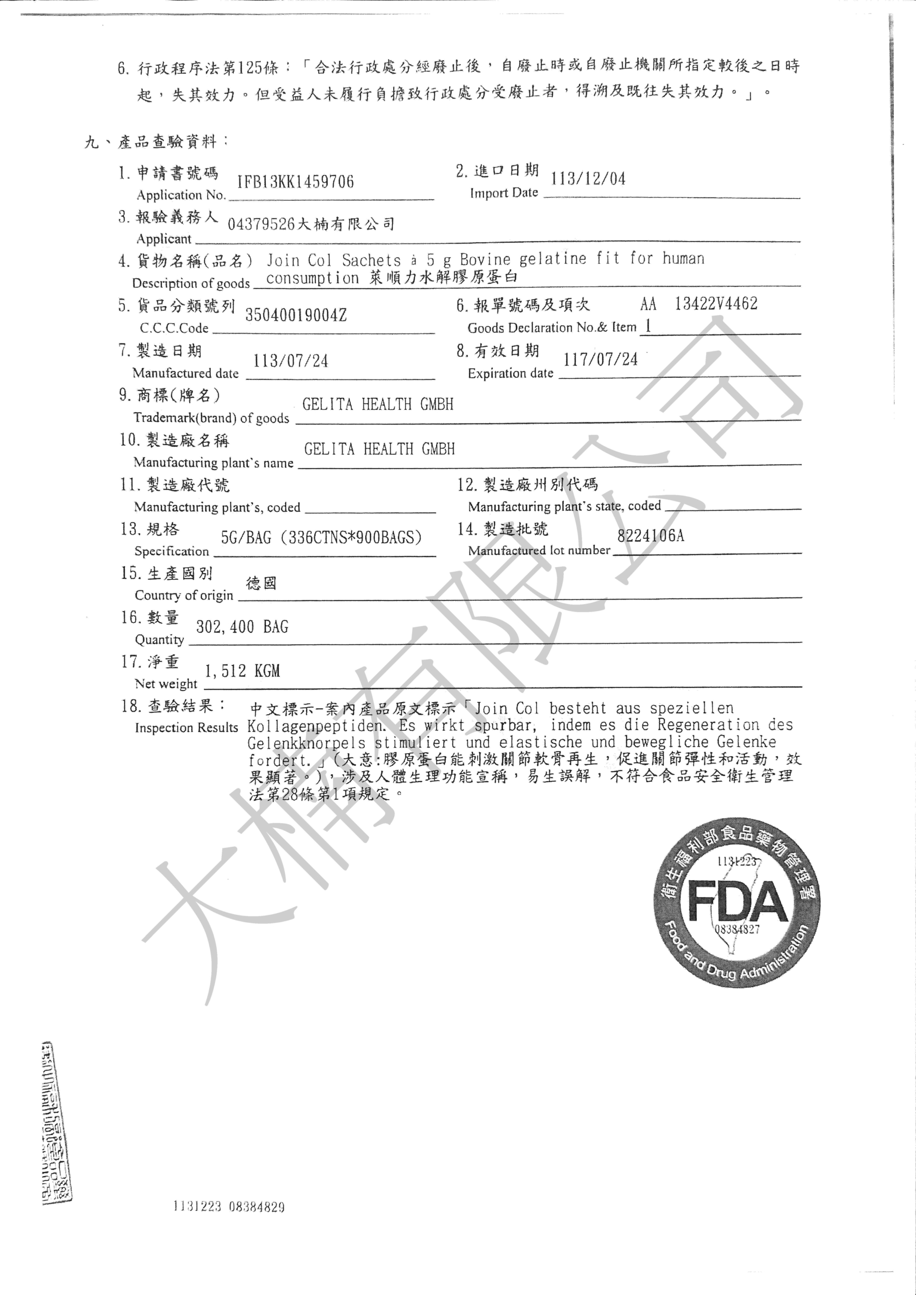 A: 萊順力JointCol® 全部在德國原廠封裝進口,有進口證明,這樣才能保證原料品質,確認使用的是德國原廠製造的胜肽膠原,不是一般的膠原蛋白或來歷不明的散裝膠原蛋白。